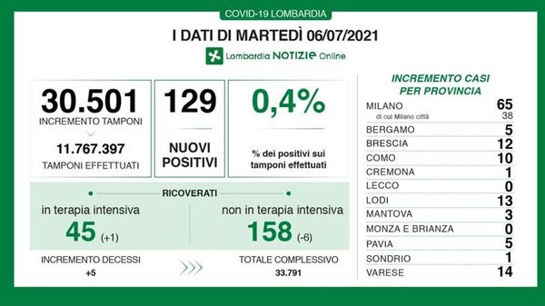 I dati di Regione Lombardia confermano che bisogna tenere alta la guardia. Altri 5 morti in regione