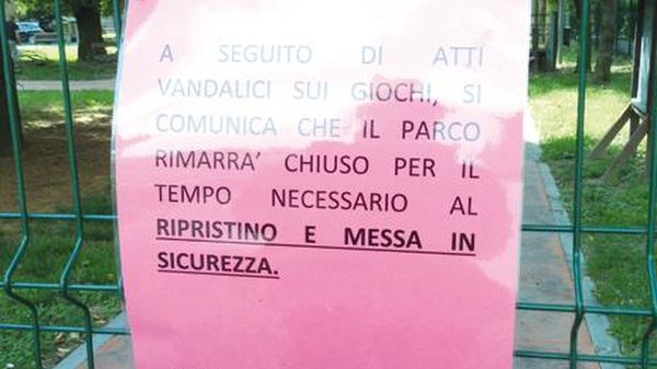 Distrutto il trenino in legno, divelte alcune assi dello scivolo lasciando scoperte le viti, pericolosissime per i frequentatori:l’amministrazione comunale ha deciso così di chiudere l’oasi