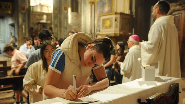 Il rito presieduto dal vescovo, tanti i fedeli in arrivo da Sant’Angelo Lodigiano