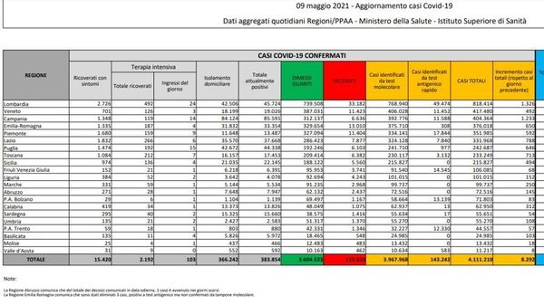 Lieve incremento delle percentuali di positività sul totale di tamponi, calano in Italia gli “attualmente positivi”.