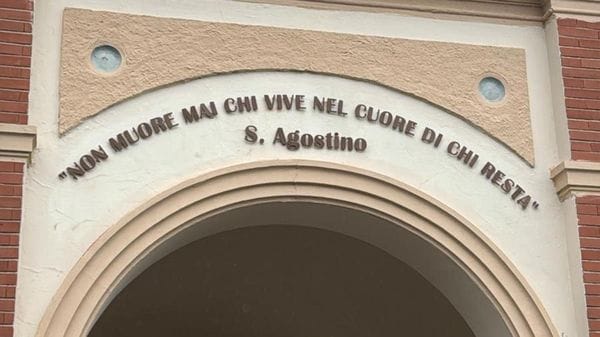 Nel giorno dei morti una nuova scritta all’ingresso del cimitero di Casalmaiocco con una frase di Sant’Agostino