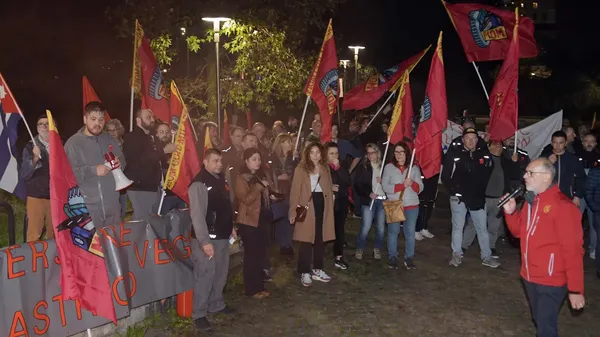 Presidio sindacale con bandiere a lutto dopo il grave incidente di ieri