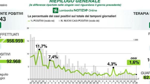 In Regione registrato oggi più dell’80 per cento del totale dei nuovi positivi in Italia. L’assessore Gallera: «Fra i contagiati 109 tamponi post test sierologico