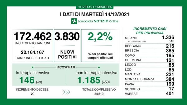 Oggi più di 161mila tamponi, in provincia di Lodi i nuovi positivi sono 50