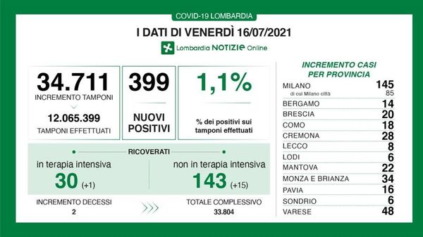 I dati di Regione Lombardia confermano che bisogna tenere alta la guardia. Altri 5 morti in regione