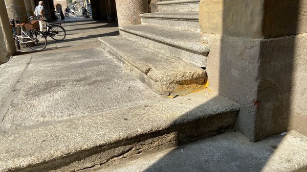 La scalinata del municipio perde i pezzi ma non è colpa dell’età