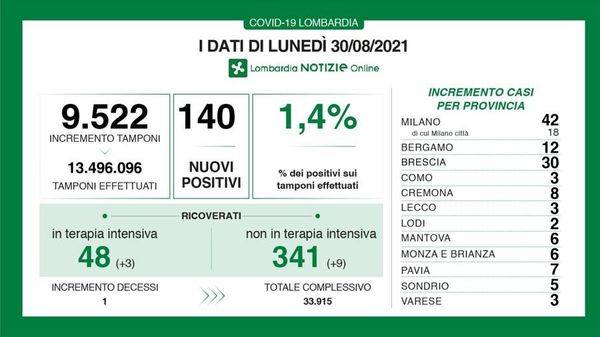 Il tasso di positività si attesta all’1,3 per cento