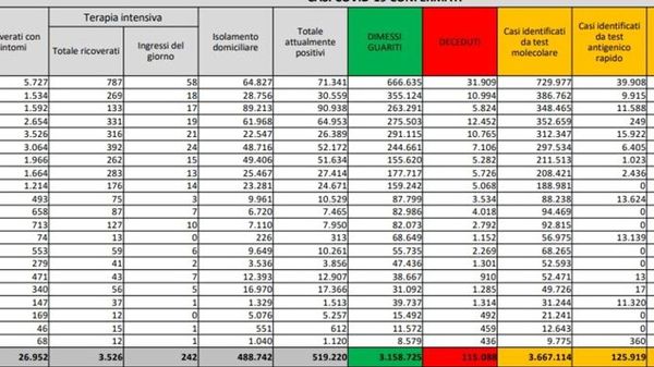 Resta ancora alto il numero delle vittime: 94 in regione e 476 a livello nazionale
