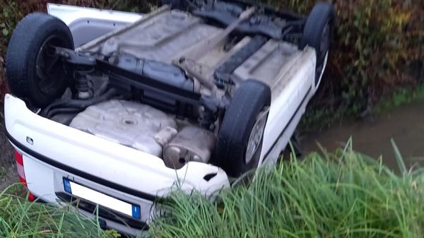 La giovane è riuscita a uscire da sola dalla vettura finita con le ruote all’aria in un canale con 20 centimetri di acqua