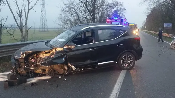 VIA PER LANDRIANO La donna alla guida della vettura sarebbe stata abbagliata dal sole basso