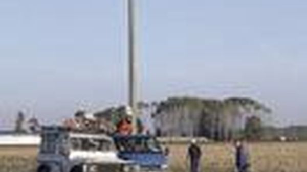 Un elicottero dell’Enel controlla la rete elettrica nel Lodigiano