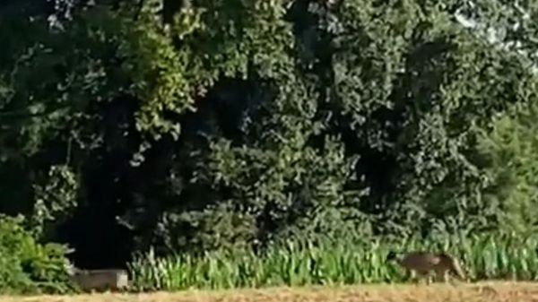 Gli animali sono passati accanto a un agricoltore che li ha fotografati prima che entrassero nella boscaglia