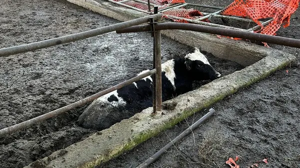 L’animale, in pericolo di vita, è stato recuperato dai vigili del fuoco