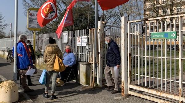 Iniziativa del sindacalista della Fisi Gianfranco Bignamini all’ingresso del presidio della Bassa