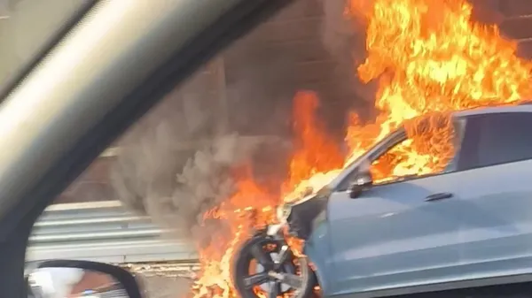 La Porsche prende fuoco, il conducente esce appena in tempo e si mette in salvo