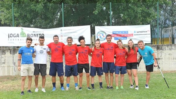 Ospiti del locale camp per ragazzi due giocatori del calcio amputati, che hanno vinto lo scudetto nel Vicenza