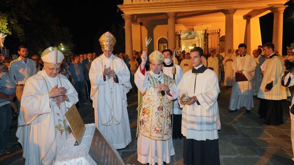 Al santuario del Monte Aureto i vescovi di Milano, Lodi e Pavia, con tanti fedeli
