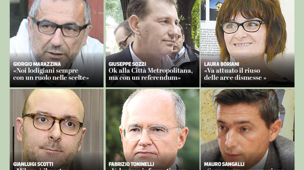 GIORGIO MARAZZINA - «Noi lodigiani sempre con un ruolo nelle scelte» GIUSEPPE SOZZI - «Ok alla Città Metropolitana, ma con un referendum» LAURA BORIANI - «Va attuato il riuso delle aree dismesse» GIANLUIGI SCOTTI - «Milano è il nostro traguardo …