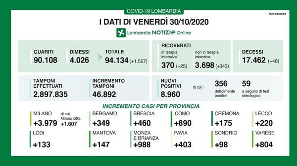 La provincia di Milano sfiora i 4mila casi, nel Lodigiano raggiunta quota 133
