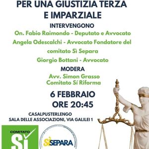 Oggi il Comitato del si riforma della Provincia di Lodi invita la cittadinanza a partecipare all'incontro "Per una giustizia terza e imparziale con l'intervento dell'onorevole Fabio Raimondo e gli avvocati Angela Odescalchi e Giorgio Bottani. Modera l'avvocato Simon Grasso. Appuntamento alla sale delle associazioni in via Galilei 1 alle ore 20,45 per arrivare con le idee chiare al referendum del 22 e 23 marzo.