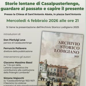 Oggi alle ore 21 si terrà la presentazione dell'edizione 2025 dell'Archivio Storico Lodigiano a cura del direttore Ferruccio Pallavera. Intervengono durante la serata don Pierluigi Leva e gli autori Giacomo Massimo Bassi e Simone Majocchi per raccontare storie lontane di Casalpusterlengo. Per gli interessati sarà disponibile una copia della pubblicazione di 928 pagine con il contributo di 28 autori, al costo di 20 euro. L'evento si terrà presso la chiesa di S. Antonio Abate.