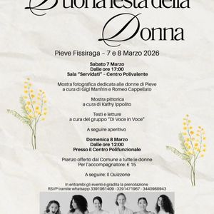 Oggi e domani dalle ore 17 presso sala Servidati al centro polivalente si terranno mostre fotografiche e pittoriche accompagnate da testi e letture a tema a seguire aperitivo.