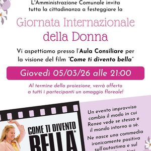 Per festeggiare la Giornata della donna, il Comune organizza in aula consiliare la visione del film Come ti divento bella e al termine per tutte le donne un omaggio floreale.