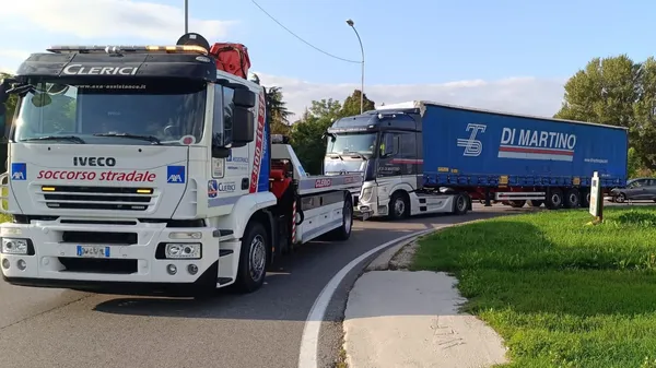 Nell’ora di punta Il mezzo pesante si è bloccato all’altezza della rotatoria proprio all’ingresso della città,