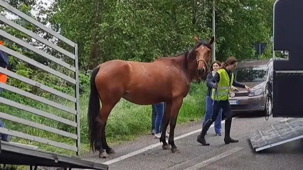 È rimasta appesa a un cavo: strada chiusa e intervento dei pompieri