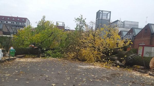 TAGLI L’intervento nel piazzale delle Associazioni è stato eseguito nella mattinata di mercoledì alla presenza della polizia locale