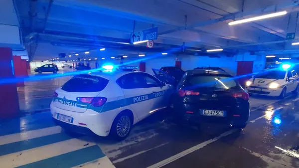 Peschiera: auto in fuga nel parcheggio, schianto e doppio arresto alla Galleria Borromea