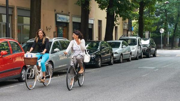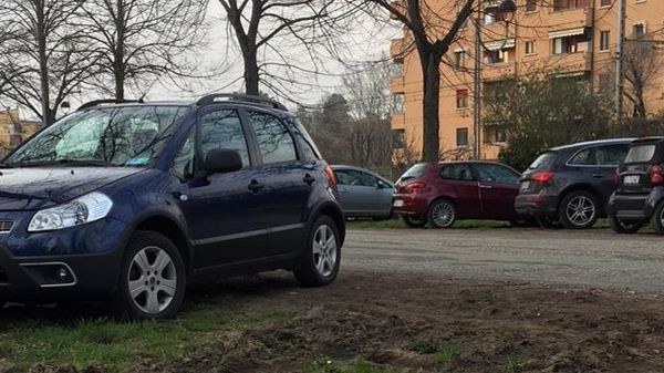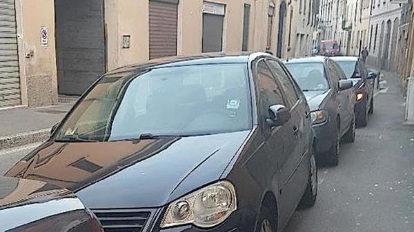 Il parcheggio selvaggio in via Piermarini a Lodi