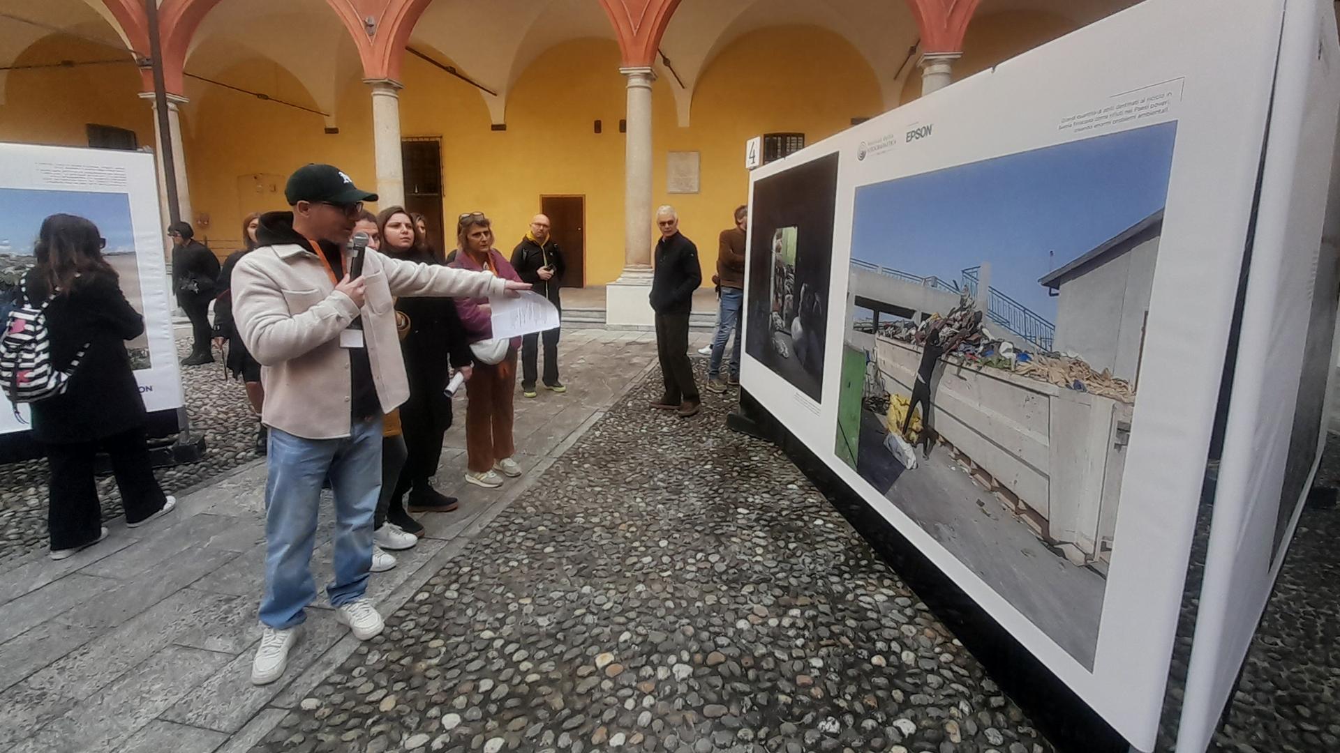 Entrambi lavorano per Aftonbladet, uno dei principali quotidiani svedesi. «Ci siamo accorti che una grossa compagnia aveva sì promesso ai clienti di riciclare i vestiti, ma in realtà li esportava in altri Paesi. Abbiamo deciso di seguire il percorso di questi abiti», ha raccontato Wennman al pubblico intervenuto domenica mattina, nell’ultima giornata del Festival della fotografia etica 2025. «Alcuni carichi finiscono in Romania, altri in Polonia, in vere e proprie città stoccaggio», ha rivelato, mostrando anche la cartina su cui ha ricostruite le rotte. “Ma la maggior parte nei Paesi africani. Ciò che più mi ha scioccato è stata la spiaggia ad Accra. Camminando sopra lo strato di abiti che ha sostituito la sabbia, mi sono reso conto di quanto immenso fosse il problema. I pescatori ci hanno rivelato che non c’è più pesce. Inoltre nell’acqua finiscono le microplastiche contenute nei tessuti».