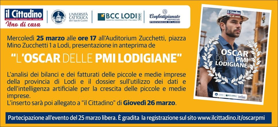 Oltre alla classifica e alla ricerca, che saranno illustrate dai docenti della Cattolica il prossimo 25 marzo a Lodi, “L’Oscar delle Pmi lodigiane” racconterà anche come le Pmi possono crescere e svilupparsi utilizzando i dati che già possiedono (e che magari non sanno nemmeno di avere) e l’intelligenza artificiale. E dunque interviste, storie, e casi di studio. E poi, come sempre, parola alle associazioni di categoria e al mondo del credito