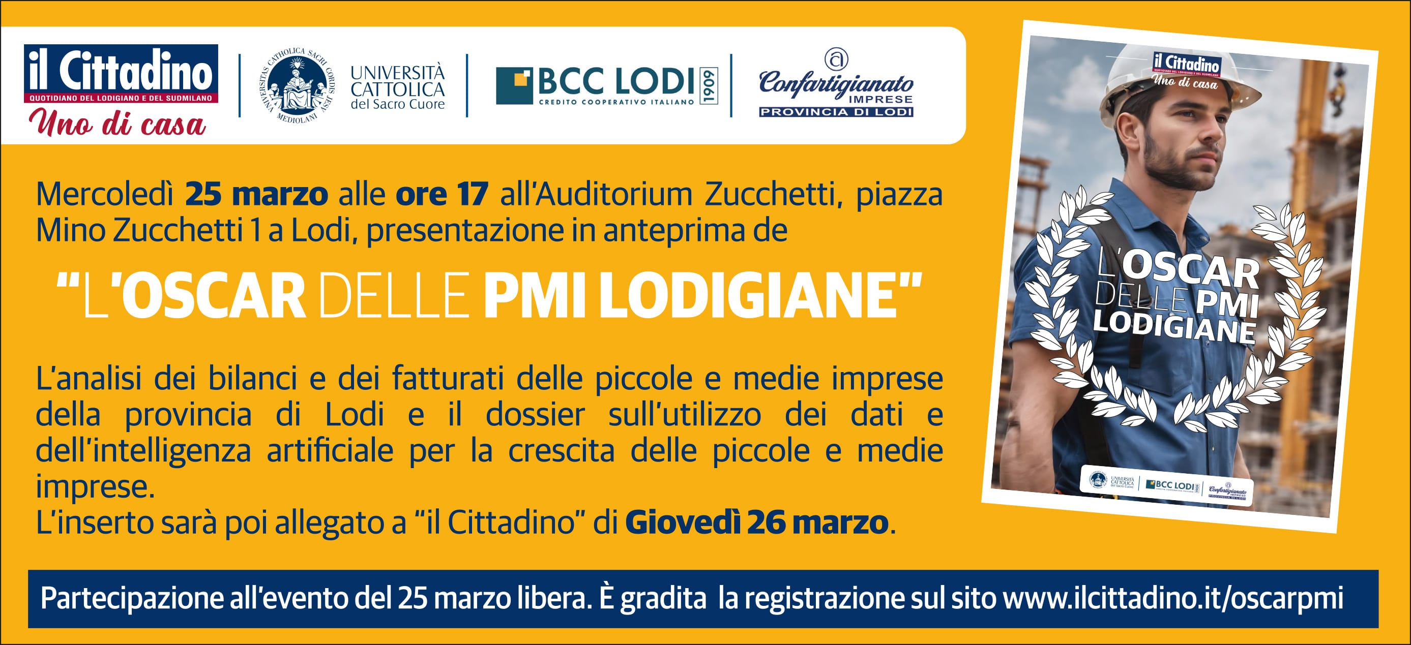 Torna “L’Oscar delle Pmi del Lodigiano”: l’evento pubblico di presentazione il 25 marzo nel nuovo Auditorium Zucchetti. Il 26 marzo il dossier con «il Cittadino»