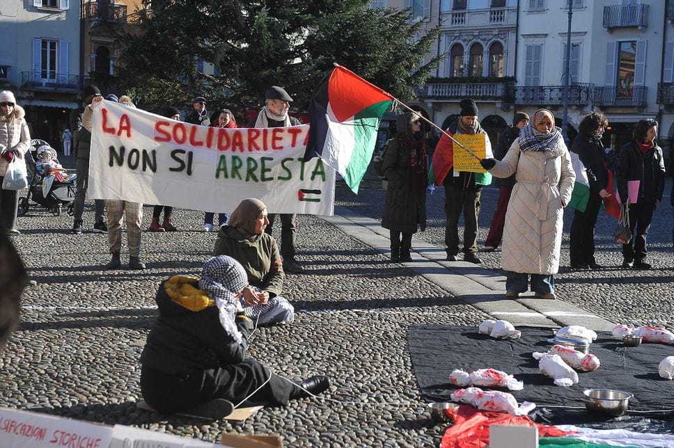 «Se la solidarietà è terrorismo, allora siamo tutti terroristi». Anche perché «la solidarietà, da parte nostra, c’è sempre stata e sempre ci sarà e continueremo ad andare avanti e a trovarci nelle piazze per la libertà dei popoli». Le parole arrivano quasi al termine di un flash mob di scena domenica mattina in piazza della Vittoria, voluto dal Coordinamento Lodi per la Palestina, con l’adesione di Antifa Lodi, Cgil Lodi, Cittadini contro la Guerra, Usb, Global Movement to Gaza, associazione Alsafa odv, TerRaDice, Donne e Palestina, Unione degli Studenti Lodi e Al Rahma onlus, dopo i nove arresti nell’inchiesta sui finanziamenti alle attività terroristiche di Hamas, che ha portato in carcere anche Mohammad Hannoun.