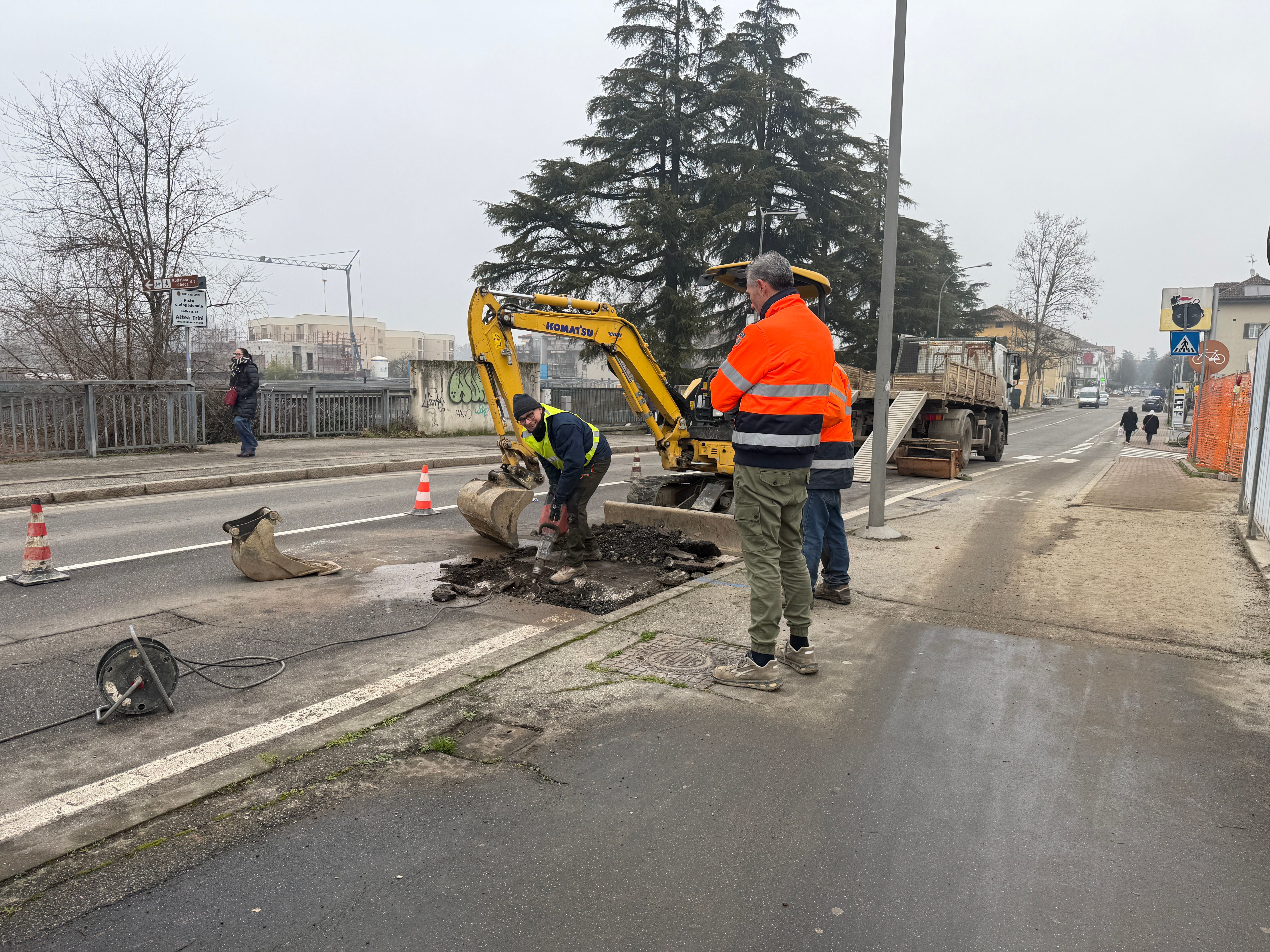 Di scena questa mattina - venerdì - il senso unico con direzione da via Cavallotti verso piazzale Barzaghi. In agenda c’erano le operazioni propedeutiche alle verifiche sui sottoservizi e sulle reti tecnologiche all’interno della struttura, che hanno richiesto mini scavi sul tracciato di via X Maggio, l’asse viario che attraversa il ponte.