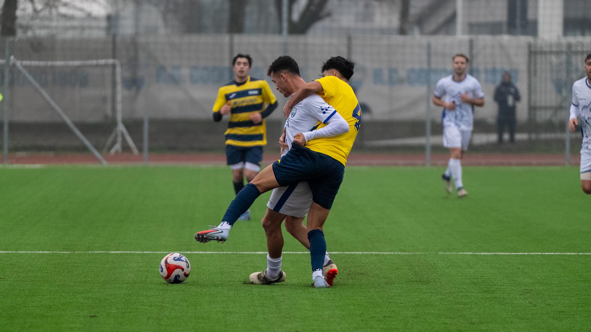 Sul rinnovato “F.lli Molinari”, con fondo in sintetico inaugurato da autorità politiche e sportive, non è stata una gara facile contro la squadra di Furgeri: nel corso dei primi 45 minuti Dragoni scheggia la traversa su assist di Donarini al 15’, ma gli risponde Miola di testa che stampa il legno dalla parte opposta su invito di Meda. Bernardini prima chiama Catanzaro a un grande intervento poi salva sulla linea su tentativo di Delle Fave. Poco prima del fischio finale di primo tempo grossi dubbi per un calcio di punizione di Venturiero con sfera che non viene toccata da nessuno ed entra in porta: su segnalazione di uno dei collaboratori del direttore di gara, viene fischiato un fuorigioco. In avvio di ripresa Meda calcia alto su assist di Miola, mentre fa centro Romano per la quinta volta in campionato con un sinistro potente e angolato su assist di Bernardini. Nel finale Catanzaro salva su Mantegazza, Chiesa rischia parecchio con un errato disimpegno, mentre Tremolada viene espulso con un rosso diretto per uno scontro in mischia con Ben Saed. I gialloblu rimangono a 32 e chiudono al nono posto superati dalla Cisanese.